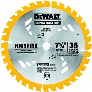 DEWALT DW3176 Construction Series 7-1/4-Inch 36-Tooth Thin Kerf Finishing Saw Blade with 5/8-Inch Diamond Knockout Arbor